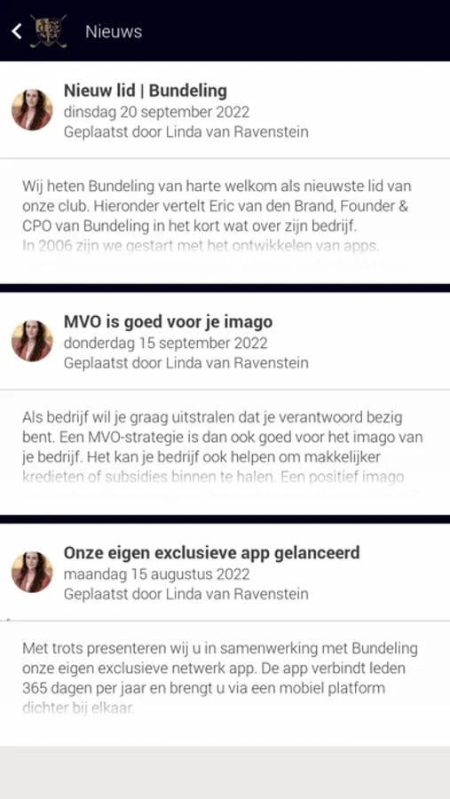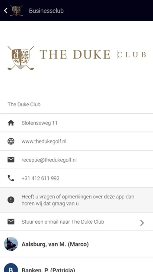 Verbreed uw zakelijke netwerk tijdens evenementen en wedstrijden van The Duke! Met de Business app komt u eenvoudig in contact met andere leden van The Duke. Bepaal zelf wanneer u open staat voor contacten én voor wie, of introduceer iemand aan een van uw connecties. Meld uzelf aan voor de diverse evenementen en wedstrijden van The Duke, zodat u optimaal kunt genieten van uw lidmaatschap.