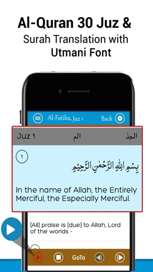 • Go To choice functions for moving straight to a particular Ayah in a Surah at whatever time. So, if due to any reason, users want to read a specific section of a Chapter, this option serves them in the best way.