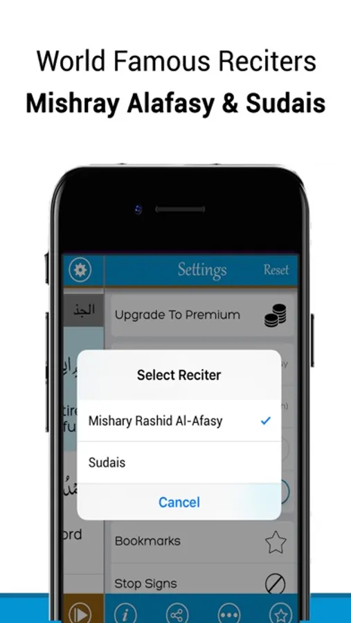 • Bookmarks selection lets the users to save any fraction of recitation to assist in continuing from same part of Surah for later recital.