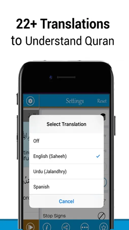 • Stop Signs are separately given in Settings to make the readers of Quran Kareem know about their true sense of usage during recitation.