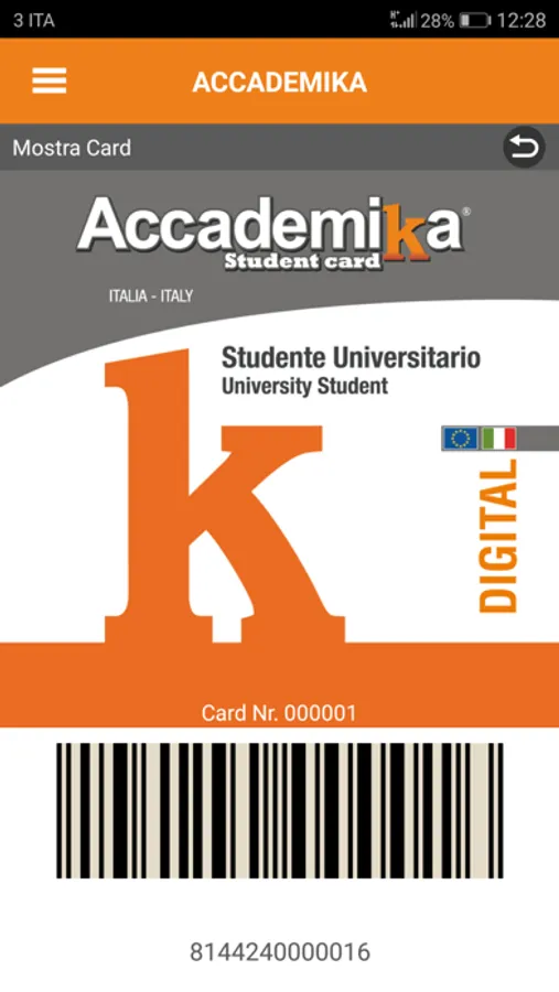 - Carta studenti Accademika digitale gratuita inclusa nell'app