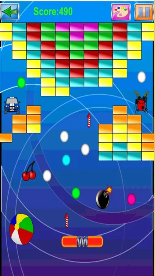 Catch the specials to enable Multi Ball, Rocket Launchers, Super Bomb, Bonus points, bigger bats, etc.