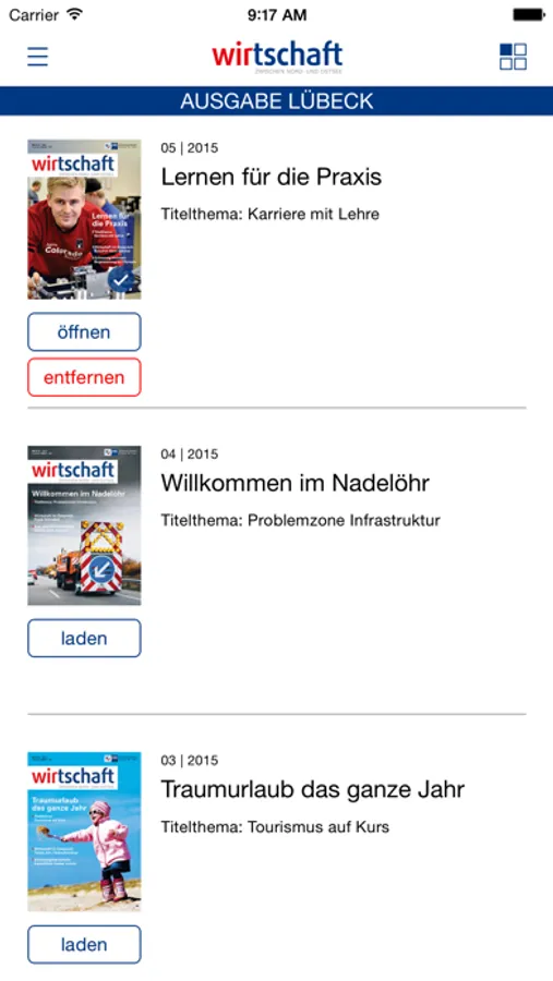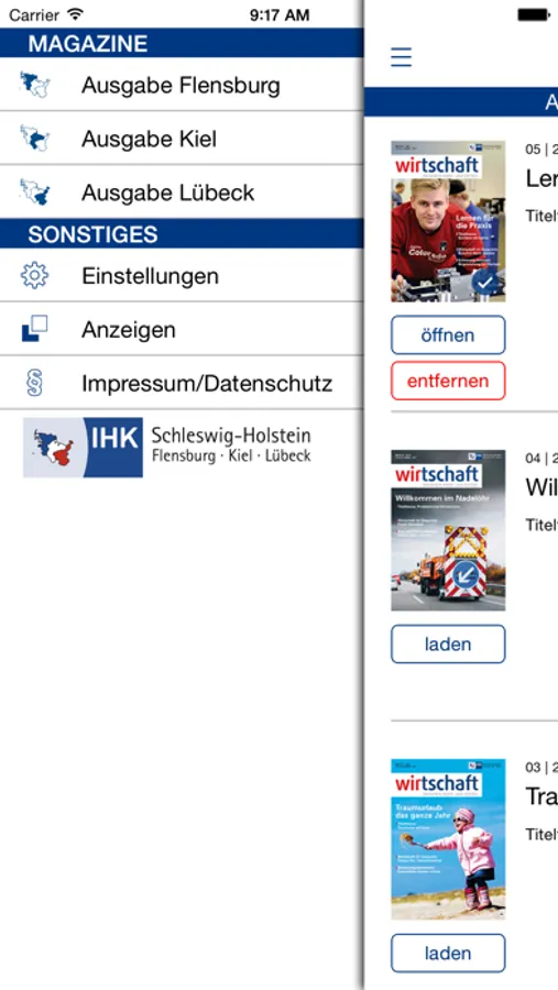 Die Wirtschaft informiert ausführlich über Wirtschaft und Unternehmen im nördlichsten Bundesland. Sie liefert aktuelle und nutzwertige Informationen unter anderem aus den Bereichen Standort Schleswig-Holstein, Gründung, Finanzierung, Ausbildung, Außenwirtschaft, Innovation, Technologietransfer, Steuern und Recht. Jede Ausgabe widmet sich schwerpunktmäßig einem Titelthema.
