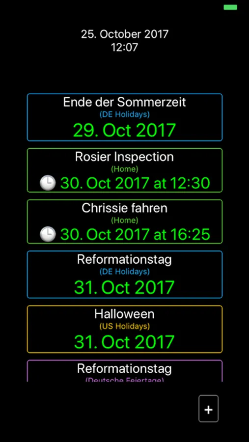 It shows, if available, the time to the last alert, to the start of the travel time and the beginning of the event. The time is displayed as hours and minutes for todays scheduled events.