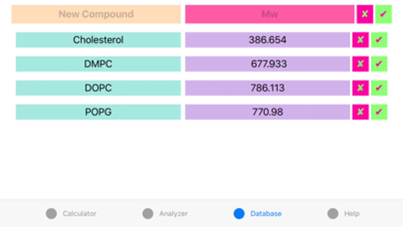 The database is used to store compounds data, that will be available to autocomplete upon typing compounds' names in the main calculator.