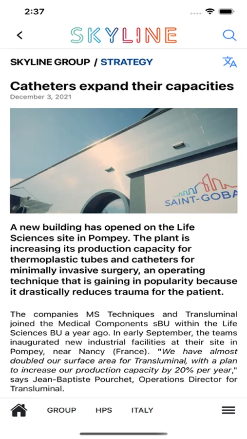 SKYLINE provides an overview of Saint-Gobain’s strategic and brands issues. Major milestones in the Group’s development, presentation of innovations, projects and initiatives, employees commitment and the outlook for our markets and customers: find out all the latest news from Saint-Gobain in the world in a single app!