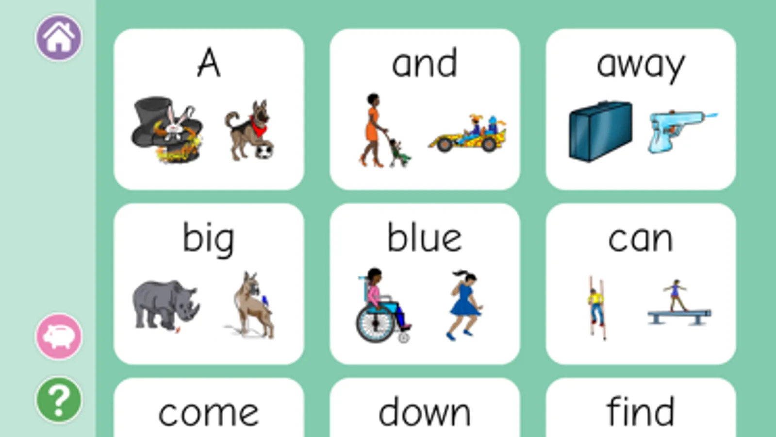 (3) Children hear a phrase or sentence and see text and a picture introducing each of the 40 Pre-Kindergarten Dolch Sight Words and each of the (4) 52 Kindergarten Dolch Sight Words; again multiple quizzes reinforce the learning process and encourage mastery.