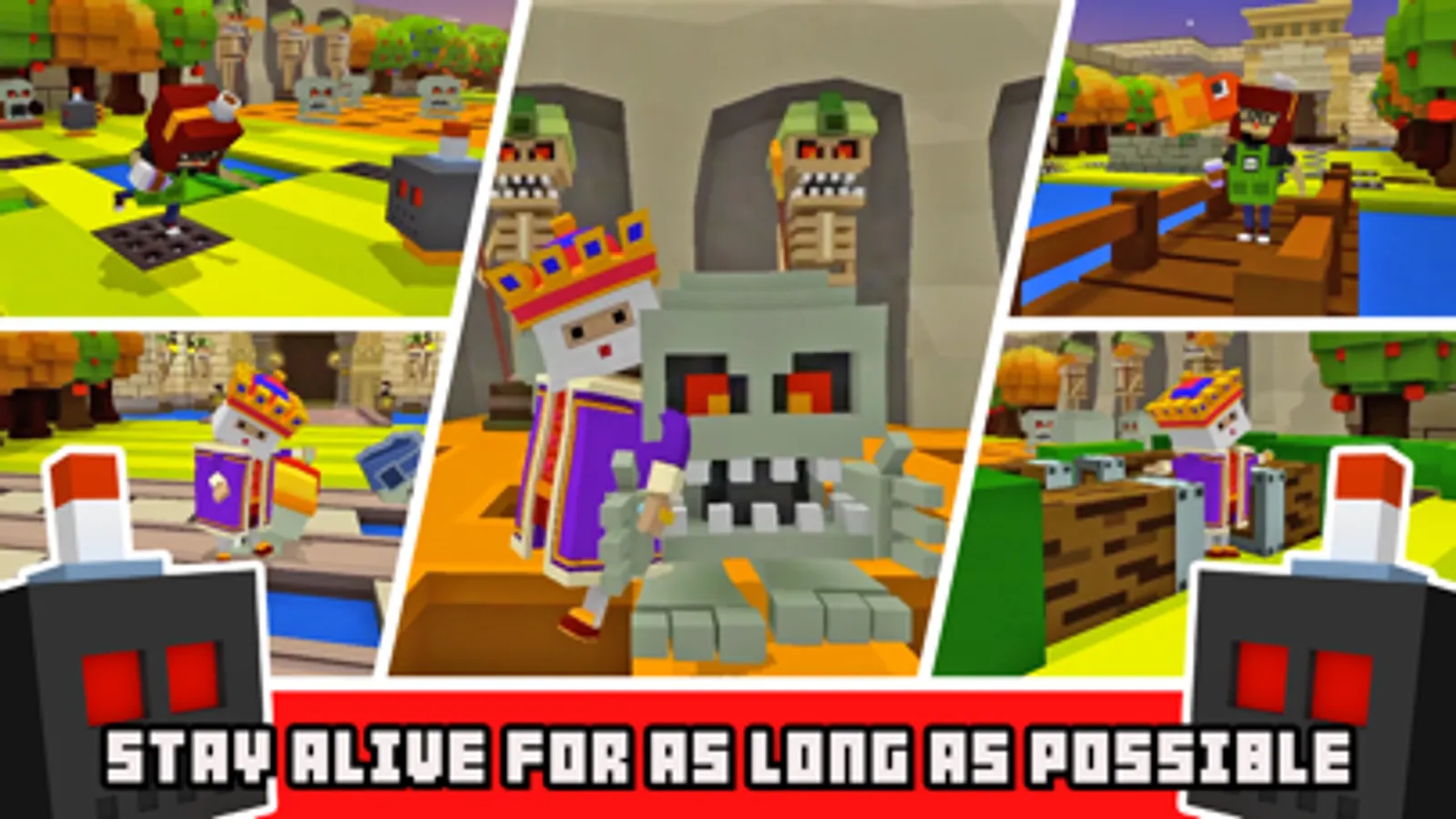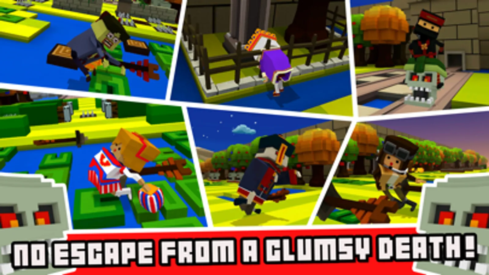 Join the King, Queen, ninja, zombie, pirate, Ace the pilot and a ton of other adorable characters in navigating this death trap filled world. While you figure out your next step, they might even entertain you with a little dance. Try to stay alive for as long as possible and no matter what you do, don't die in a dumb way!