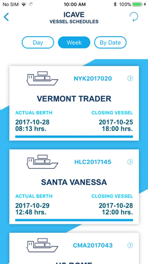 • Vessels’ itineraries (today, this week, by dates).