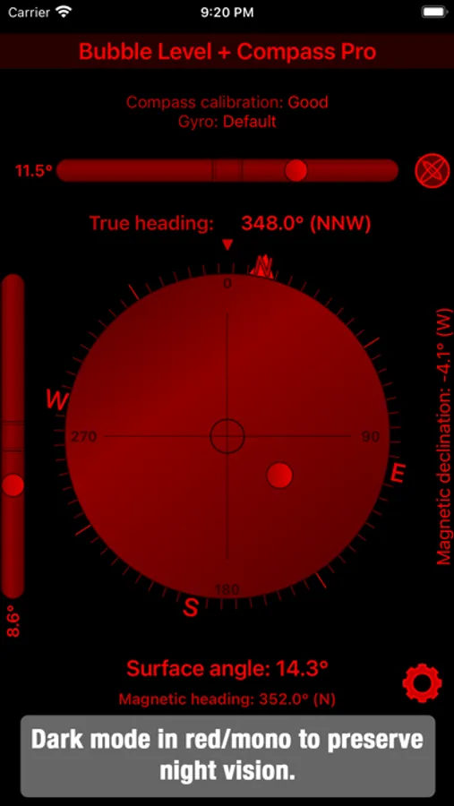 -Magnetic declination reading, which shows the offset between magnetic and true north for when you want to use a physical magnetic compass (requires access to your location).