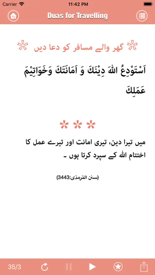 How do we do that? Through authentic supplications and adhkar taught to us in the Quran and Hadith especially for travel time! This app collects all the travel supplications attributed to the Prophet Muhammad (PBUH). Transform your commute time from boredom and stress to peace of mind and reward!