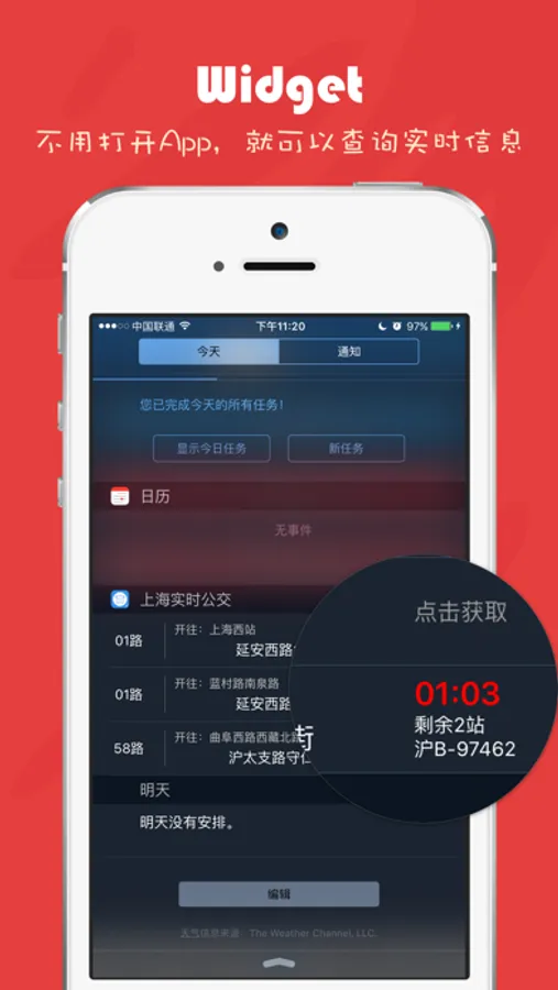 * 首款支持通知栏快捷查询的公交APP(iOS8系统以上),史无前例的方便!