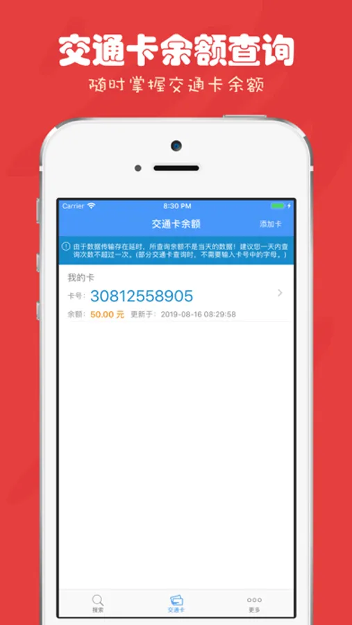 * 交通卡多卡管理功能,余额查询,多卡信息让你一手掌握。