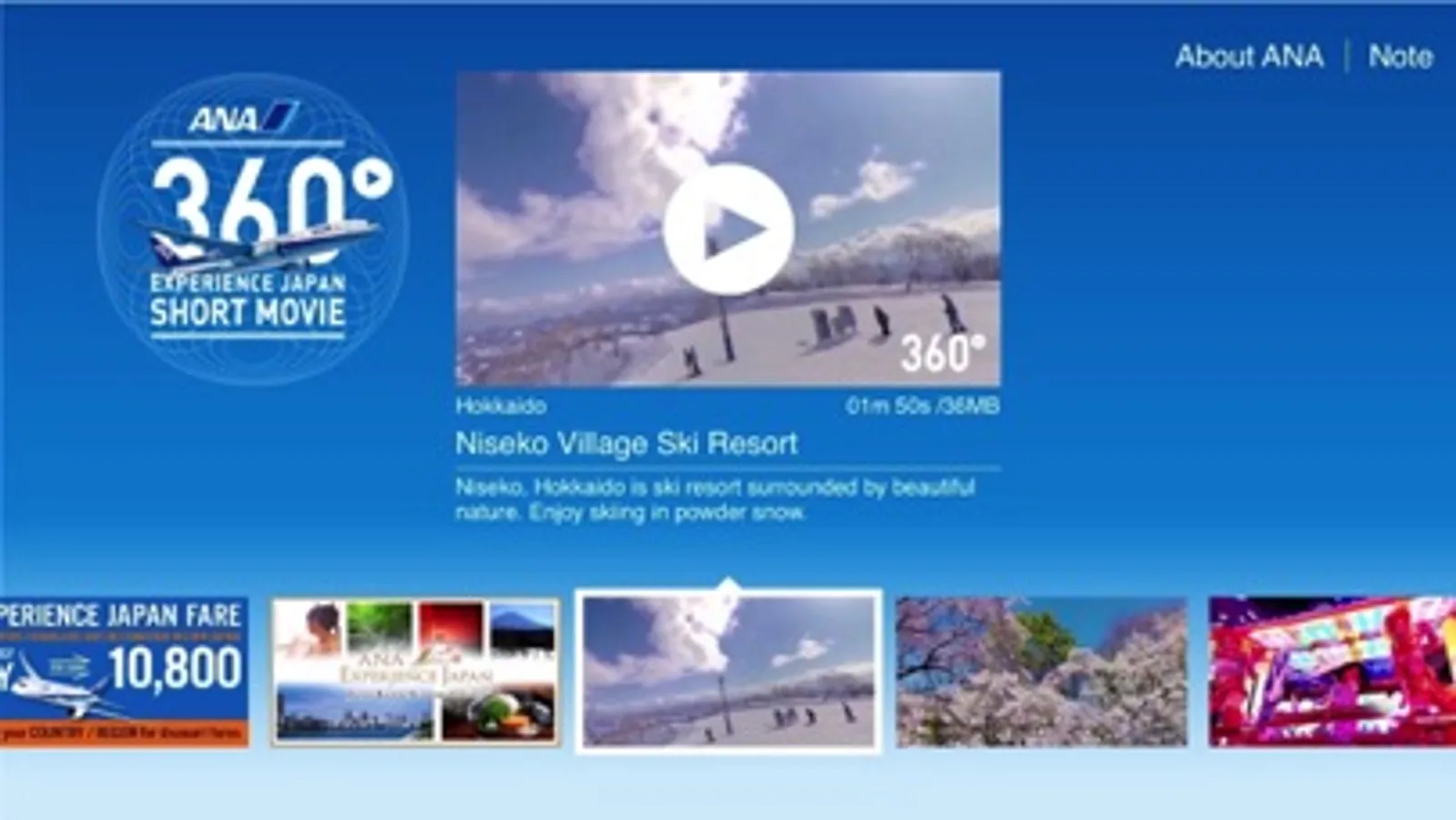 ANA 360° App gives you Virtual Reality(VR) experiences through interactive 360-degree short movies.