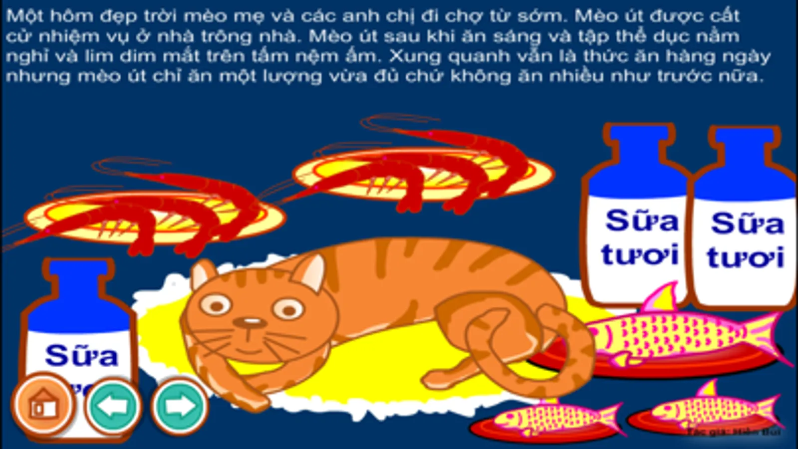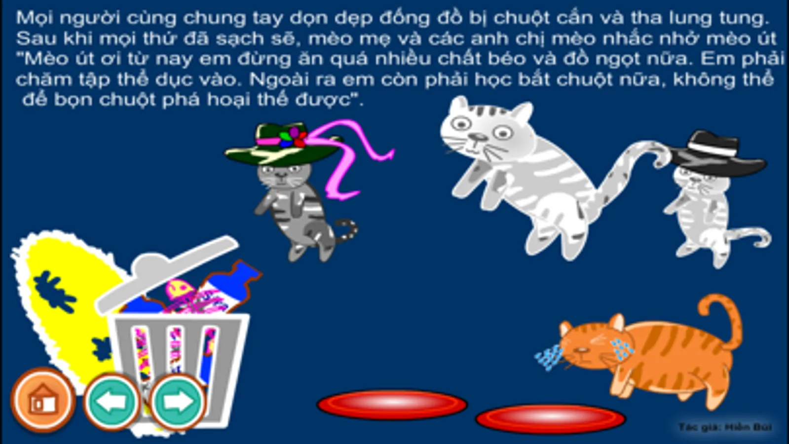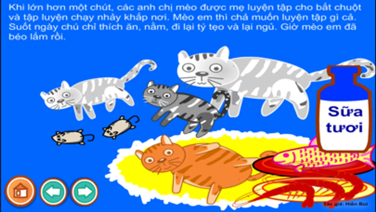 Truyện kể cho bé "Mèo con lười biếng". Hoàn toàn miễn phí, không in-app-purchase.