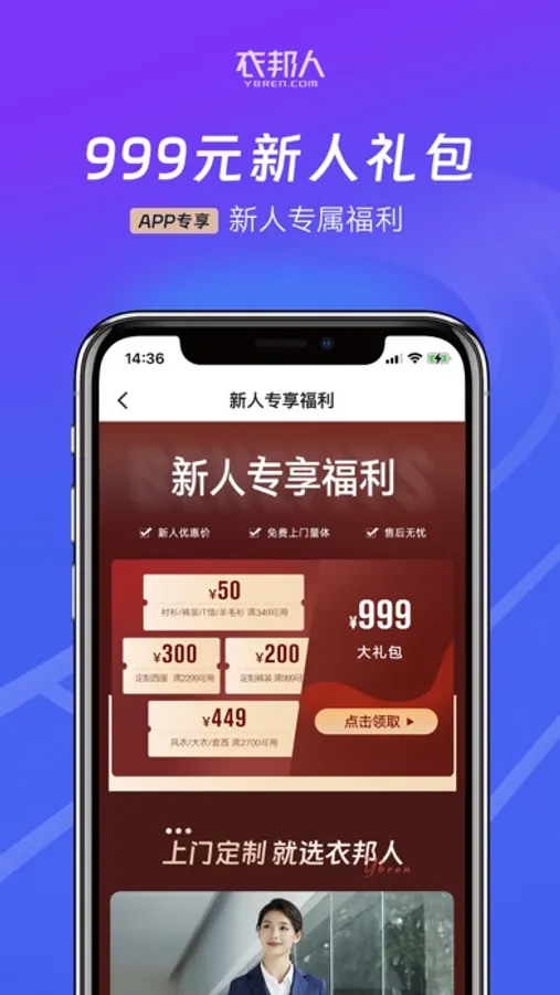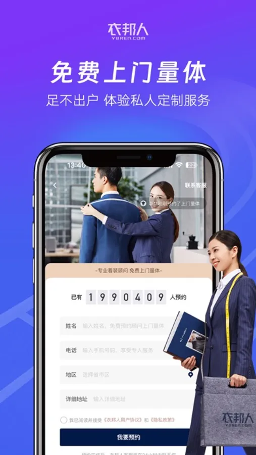 1、一键预约,上门服务:衣邦人APP、小程序、公众号、官网一键预约,随时随地上门服务;