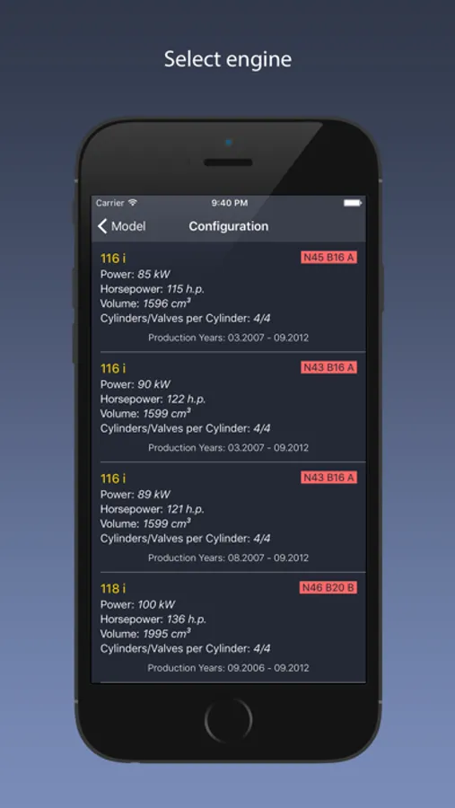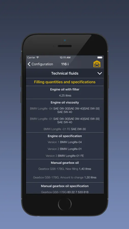 The application contains technical information that will help you in the repair and maintenance of your car.