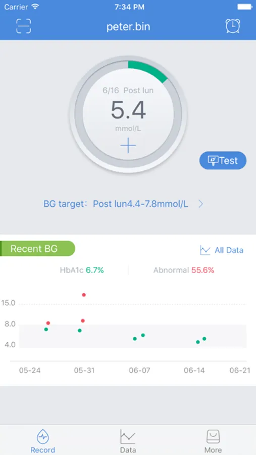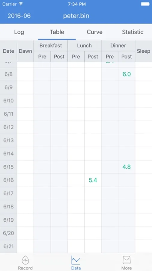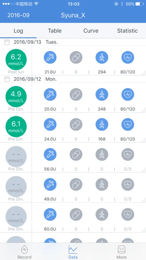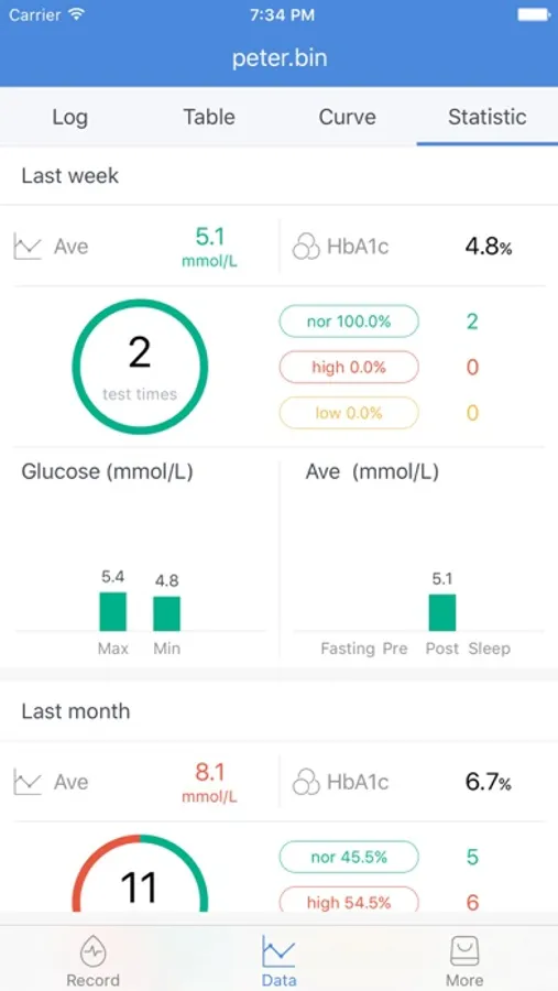 3. Manage your blood glucose with data, table, curve, and statistics.