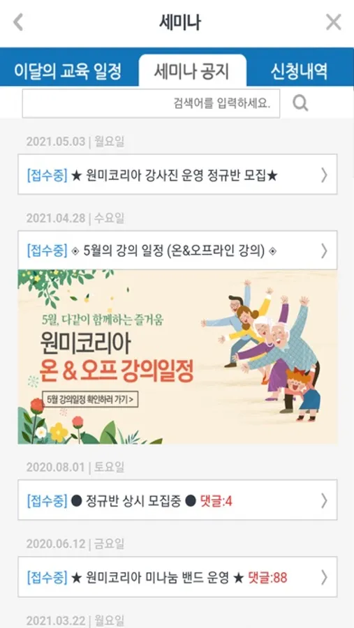 쇼핑과 세미나 예약까지 APP을 통해 가능합니다.