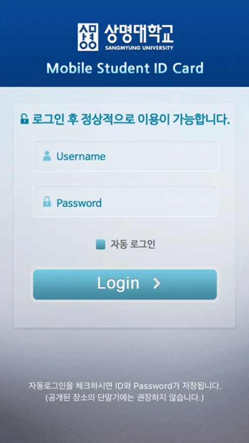 상명대학교 서울캠퍼스, 천안캠퍼스 구성원(학부생, 대학원생, 교직원)을 대상으로 서비스하는 공식 모바일학생증/신분증 앱입니다.