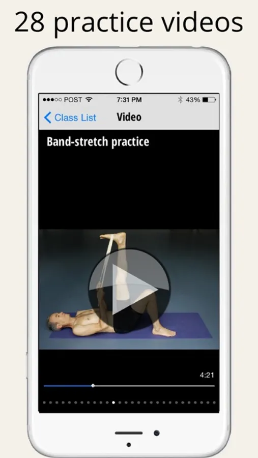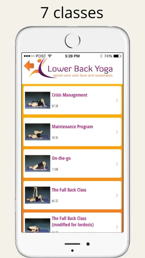 The '7 Classes' app reuses all 28 practices of the "Full Back Class" to formulate 6 additional classes: