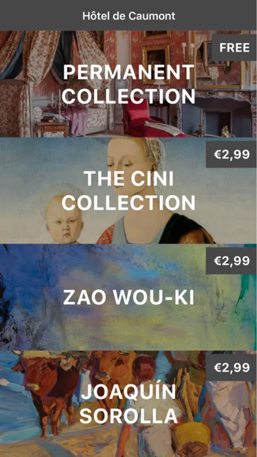 The app contains an in-app about the permanent collection and many in-apps about the temporary exhibitions.