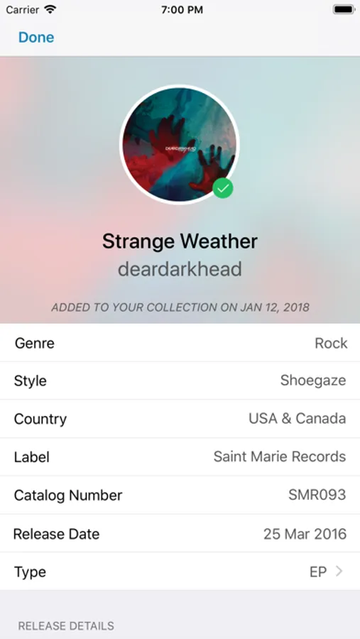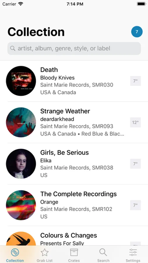 Customize every detail about each album and organize them how you please. You got that 7" at a show in a college basement in '96? Make a note of that. How about that limited edition LP - what number is yours? And what about your friend's band's test press - not in any database online? Add it to your collection manually. And if it's not in your collection, but you want it to be? Just put that in your Grab List instead.