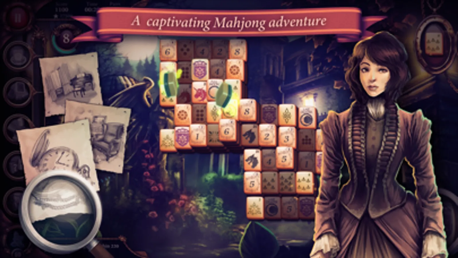 A captivating adventure set in Victorian England; help Mary uncover the mystery of her missing fiancé by solving mahjong puzzles and using special powers!