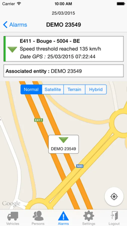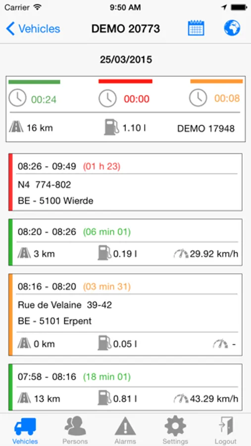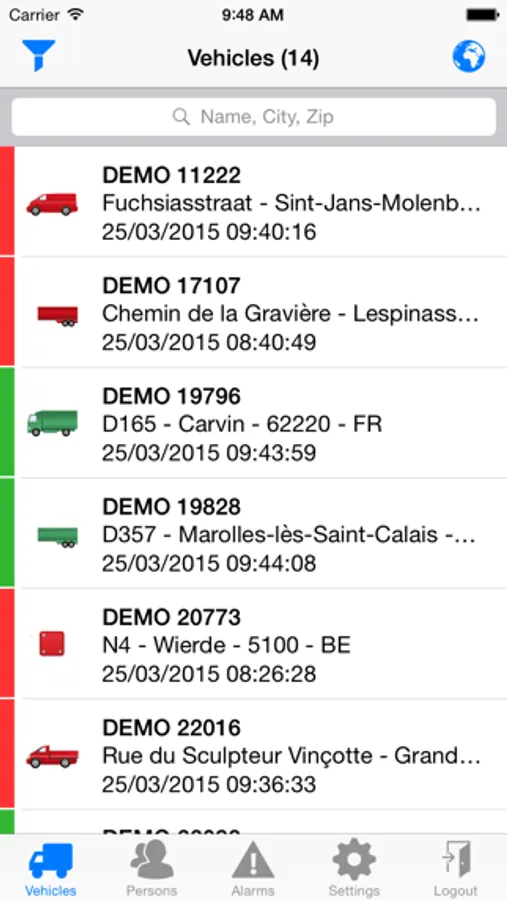 - Alarm management: Live monitoring of alarms generated by vehicles