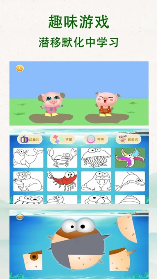 3. 经典小游戏,跳泥坑,儿童拼图,儿童涂色,让孩子学习逻辑思维能力