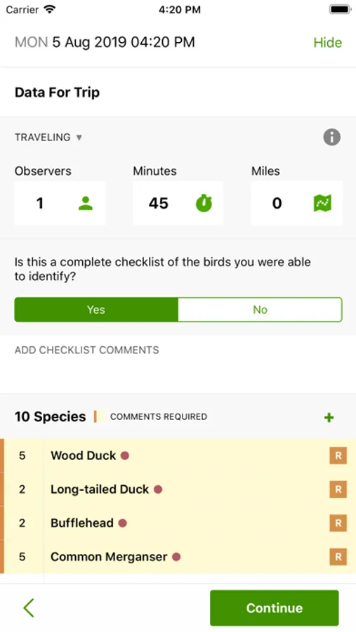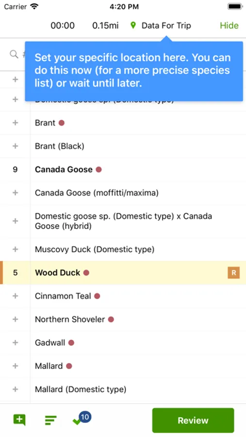 - Trip and Day list functionality that makes it easy to keep track of your species list on a particular outing.