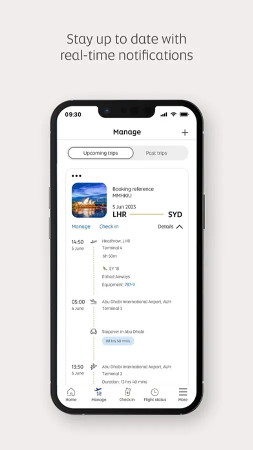 Download the Etihad Airways app for seamless travel at your fingertips. Book and manage your booking, save your boarding pass to your phone for peace of mind, pick your favourite seat, easily share your trips on social media and stay up to date with real-time flight updates, personalised offers and destination guides with smartwatch notifications on the go.