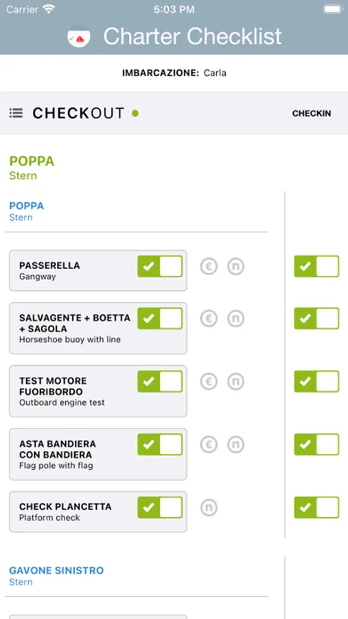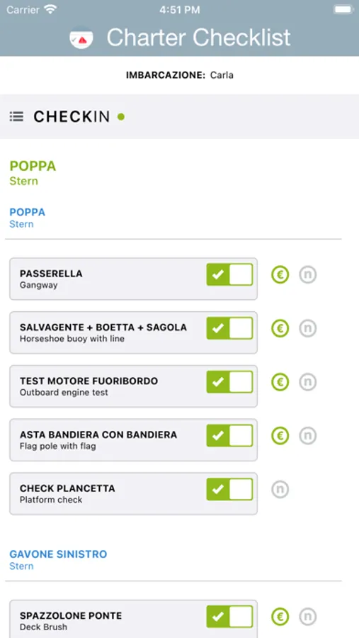 √ Ogni checklist è associata ad una specifica imbarcazione/auto - massimo livello di personalizzazione