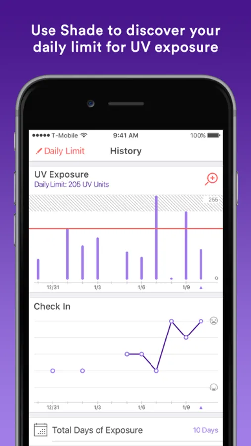 The Shade UV sensor tracks your UV exposure automatically. The app enables you to track your symptoms (e.g. sunburn, skin burn, skin rash, joint pain, fatigue, brain freeze, kidney issues, muscle pain, nausea, sun poisoning, etc.) and rate your health and disease activity.