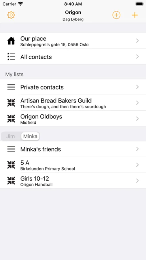 With Origon's shared contact list, everybody keeps their own contact information up to date. Whenever one of your contacts updates their address, email or phone number, you will have their updated information at your fingertips the next time you open Origon. This way, the contact lists always stay up to date.