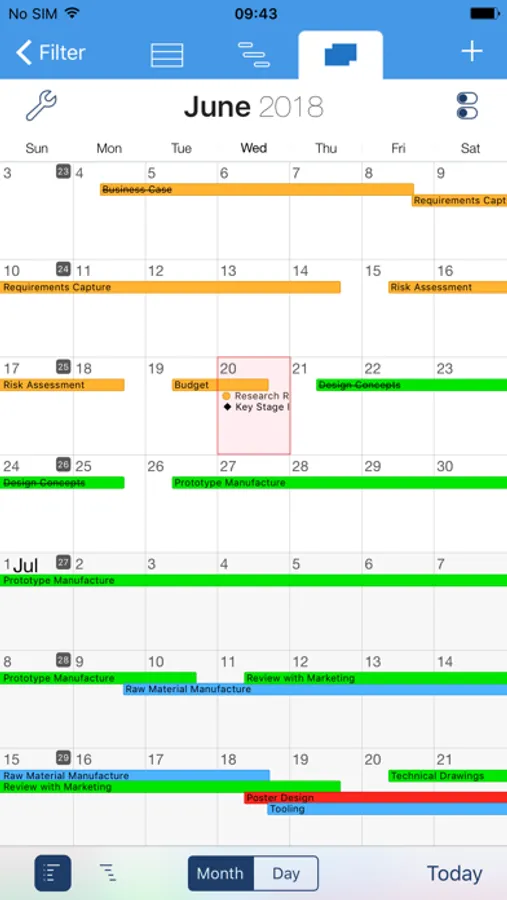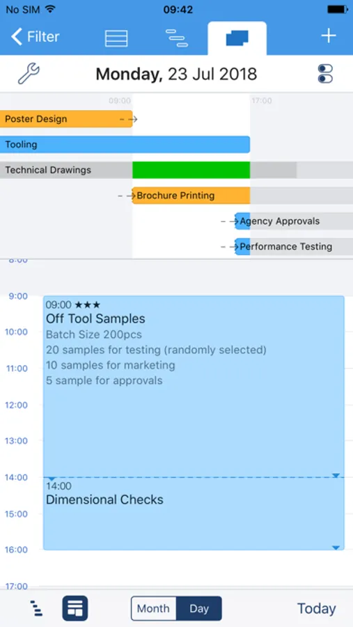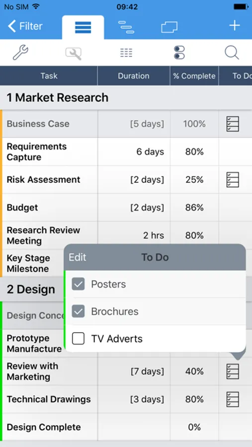• Filter : Filter the Task, Gantt and Calendar views to show tasks of interest. Filter by Flag, Milestone, Status, Phase, Resource.