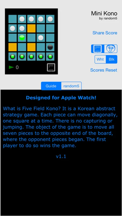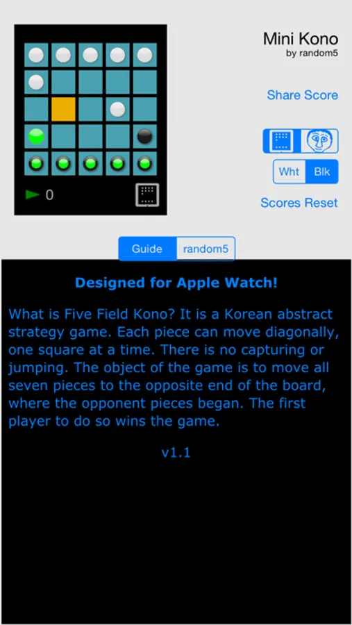 A miniaturized version of the Korean abstract strategy game of Five Field Kono.