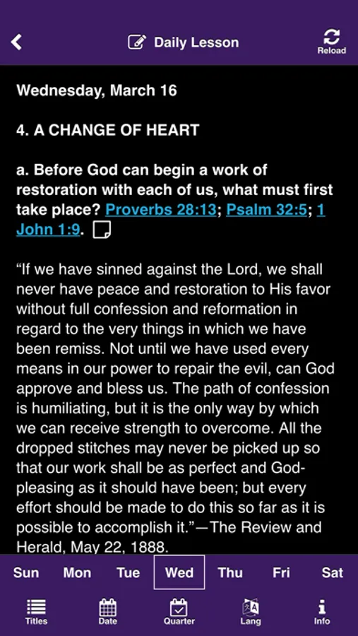 The purpose of this application is simply to put the Sabbath Bible Lessons in the hands of as many people as possible, giving them the opportunity to study the Bible whenever and wherever.