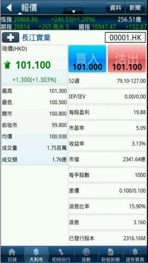 -股價圖表,可橫直向顯示,及選擇多個時段
