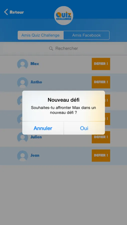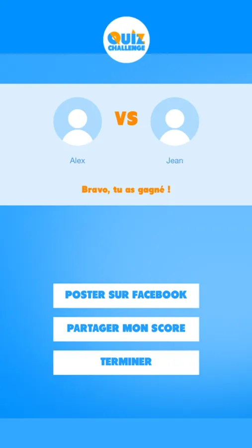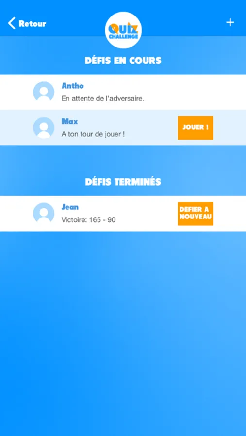 * Lorsque tu lances un défi ou que tu en acceptes un, ton adversaire et toi-même n’avez pas besoin d’être connectés à Quiz Challenge en même temps. Lorsque le premier a terminé la partie, son score est partagé à son adversaire, qui va devoir répondre exactement aux mêmes questions. Qui sera le meilleur ?