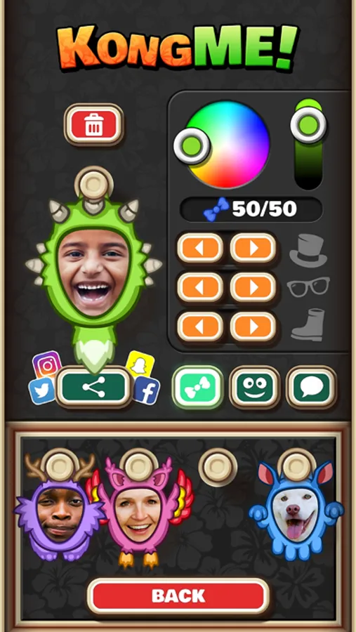 Now you can even take a selfie and create your very own Kong! Kong your friends and family and dress them up with fun accessories! There are thousands of combinations!