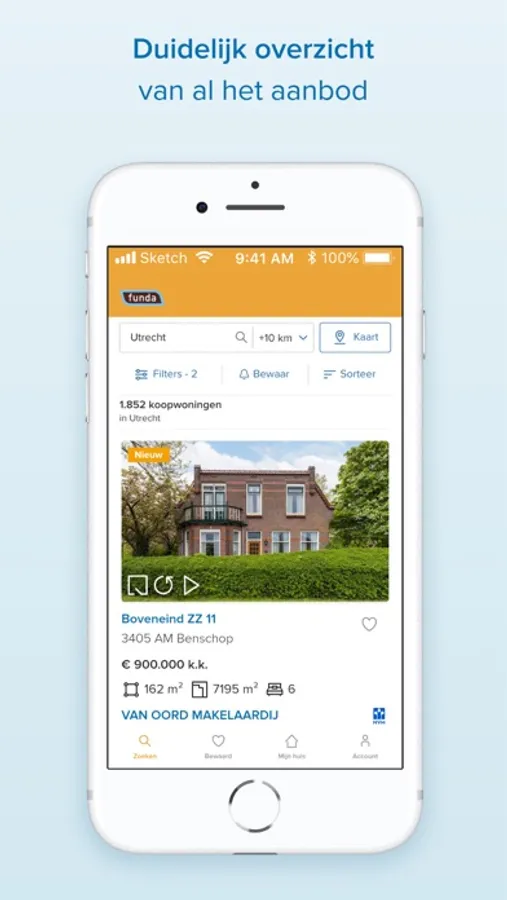 Dé app om je toekomstige koop-, huur- of nieuwbouwhuis te zoeken. Bekijk onderweg of thuis vanaf de bank het hele woningaanbod op funda. Kijk even rond bij huizen in de buurt – of die van je buren ;) –, doe leuke ideeën op voor je eigen woning of word op slag verliefd op je toekomstige stekje.