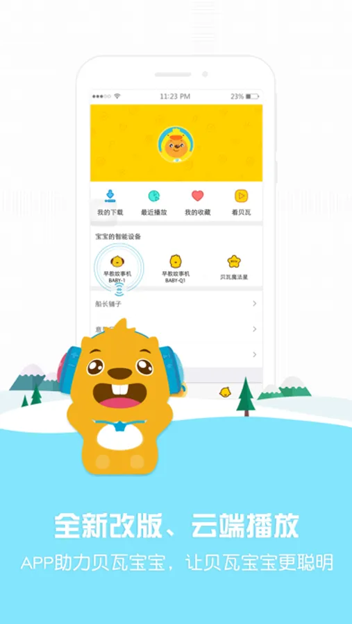 贝瓦宝宝APP是贝瓦早教智能故事机的最佳拍档故事机可通过贝瓦宝宝APP,一键联网、海量下载。围绕贝瓦早教智能故事机,组建专属家庭圈,家人、朋友互动多多。