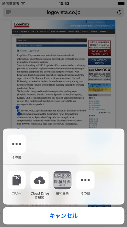 Safari 等のアプリから選択した単語を直接参照出来ます。