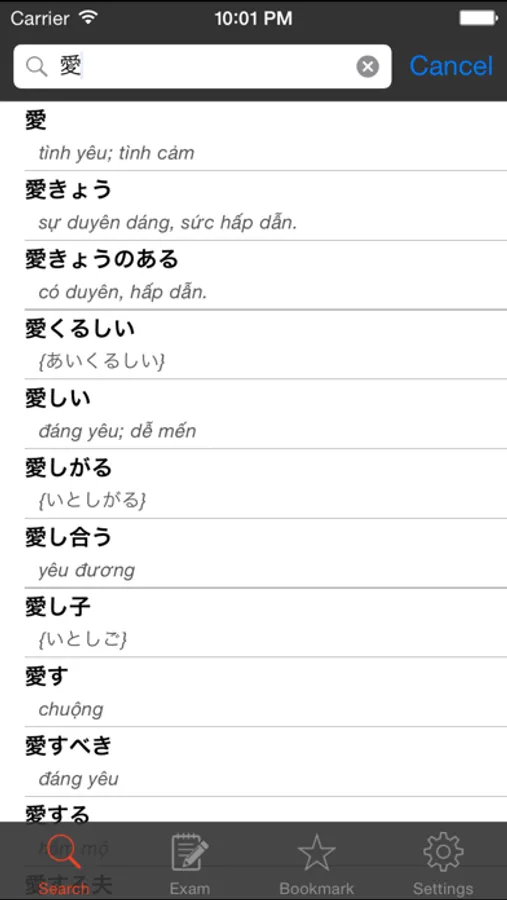 - Có thể tìm kiếm cùng lúc Nhật - Việt và Việt - Nhật.