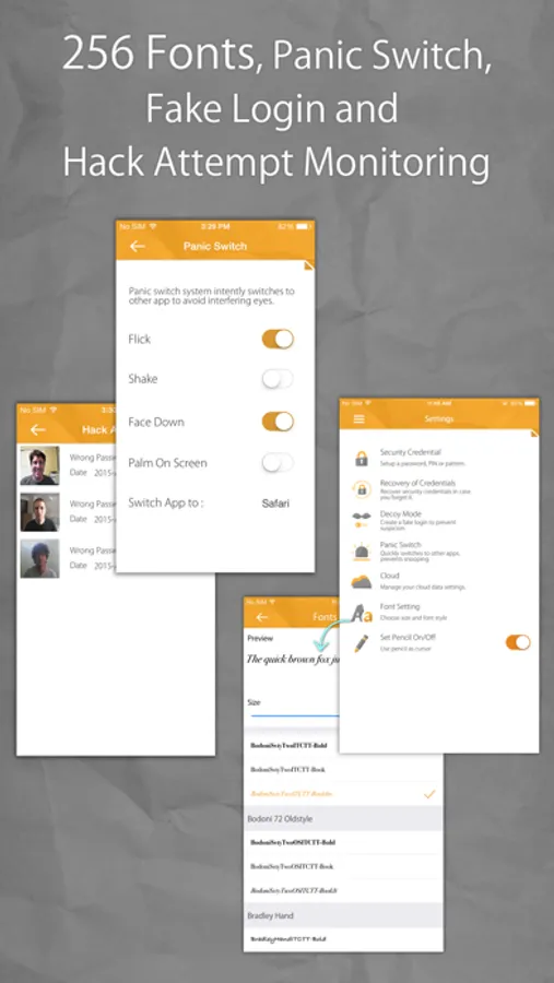 • Panic Switch (immediately switch to decoy app)