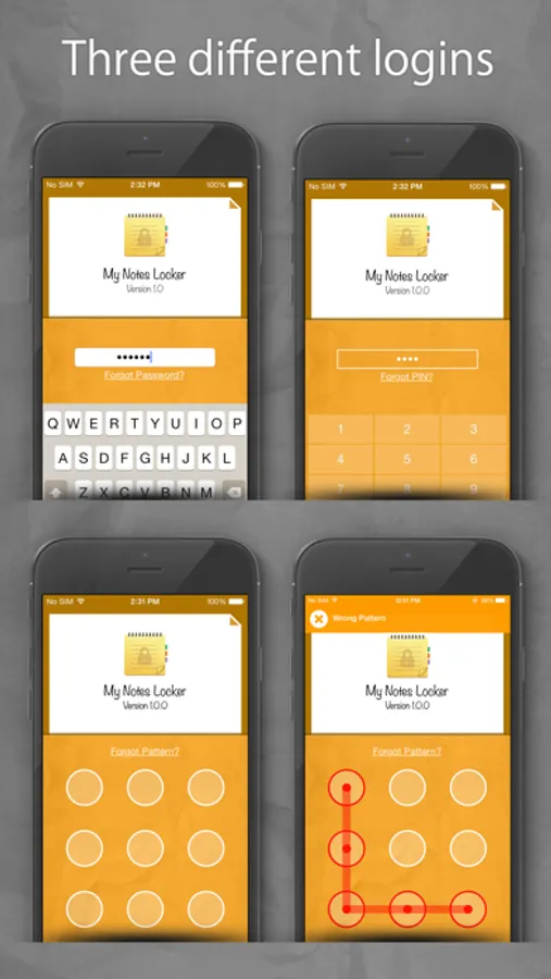 Notes Lock password-protects your secret notes and to-do lists with a pass code, pin code or pattern. Notes Lock lets you write secure notes in different fonts and sizes, and can organize them as you wish. It also allows you to insert images and sounds into your secure notes & you can edit your secure notes anytime with the secure Notes Editor function (supported by Password Note.