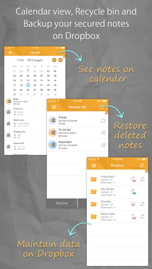 Password Note lets you make a note of anything you want. Notes Lock makes it easier for you to note down lectures or keep secure notes for your school, college or university classes. You can also update checklists and to-do lists for shopping, work, or any other purpose.