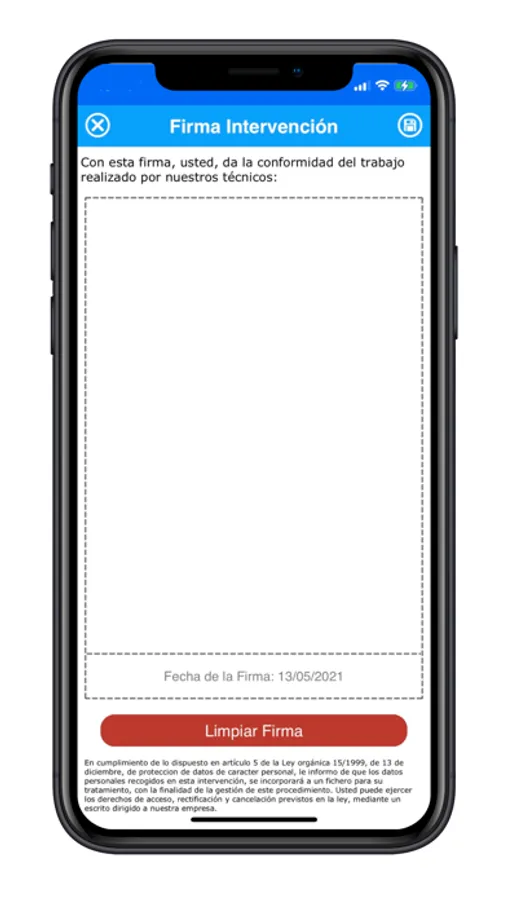 Permite imputar las intervenciones de los técnicos indicando los rangos de horas empleadas la descripción de trabajo realizado y la firma del cliente validando dicho trabajo.