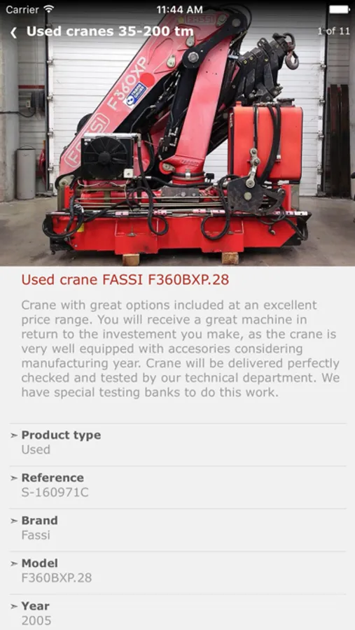 - Mercado de ocasión: relación grúas usadas y otros equipos disponibles, con ficha completa, fotos y catálogo. Para saber el precio será necesario “logearse”.